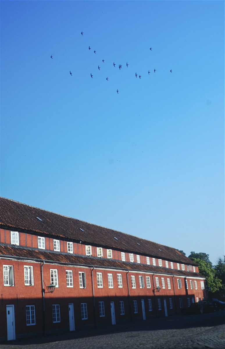 Mursejlere over Kastellet i København. Mursejlerens jublende skrig har lydt over byen hele sommeren, men i disse dage stikker de hurtige flyvere afsted sydpå til tropisk Afrika. Om kort til er deres lyd af sommer over byen væk. (Foto: Michael Stoltze).