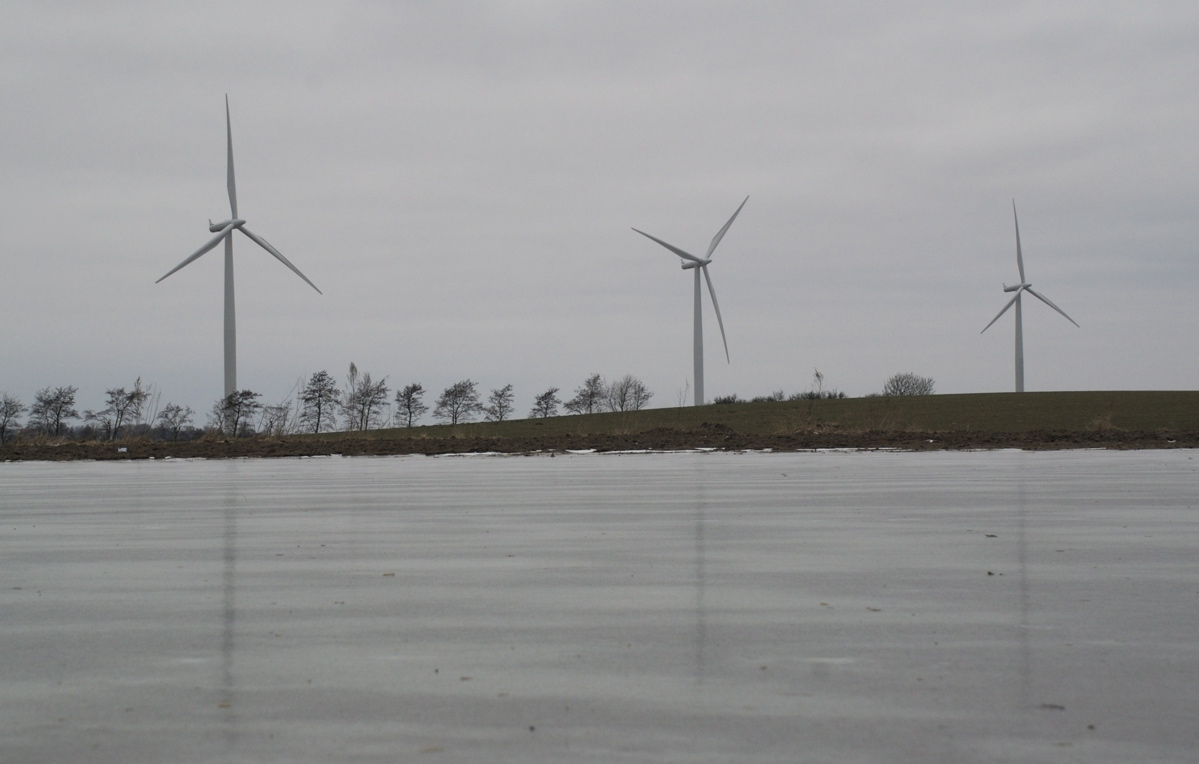 Blankis og vindmøller ved Ting Jellinge, 21. februar 2011. (Foto: Michael Stoltze).