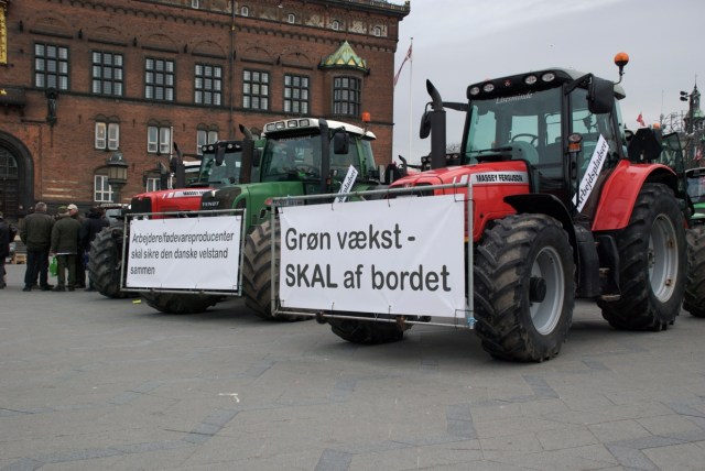 Udkantsdanmark indtog Rådhuspladsen i København den 16. marts med deres store traktorer. Puha-da-da eller hva'? (Foto: Michael Stoltze).