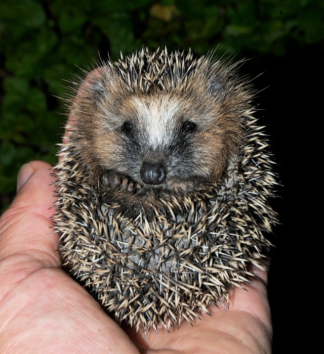 Og her er en del af udkommet af pindsvinenes tur i høet: En pindsvineunge, der gik tur i haven i august 2011. (Foto: Michael Stoltze).