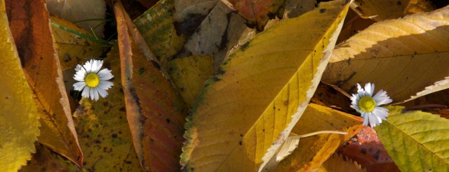 Kirsebærblade og bellis i november. (Foto: Michael Stoltze).