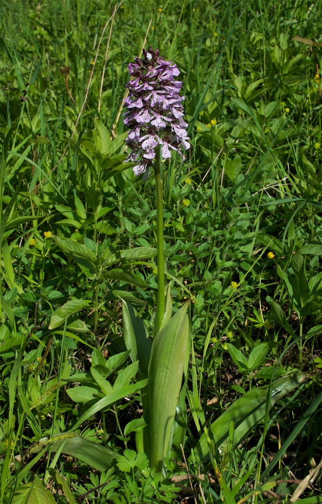Stor gøgeurt er en af Danmarks prægtigste orkideer. Den kan blive over 1/2 meter høj. Blomsternes farve varierer en del. De kan være helt hvide. (Foto: Michael Stoltze).
