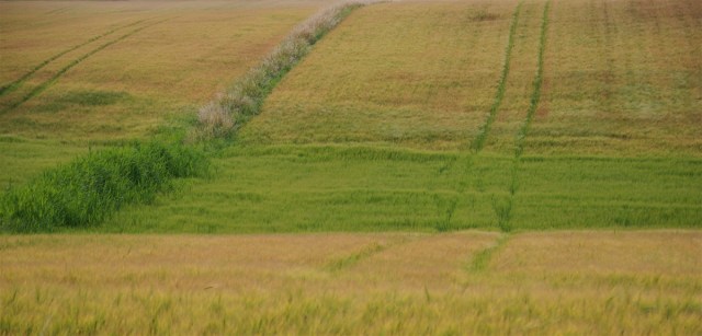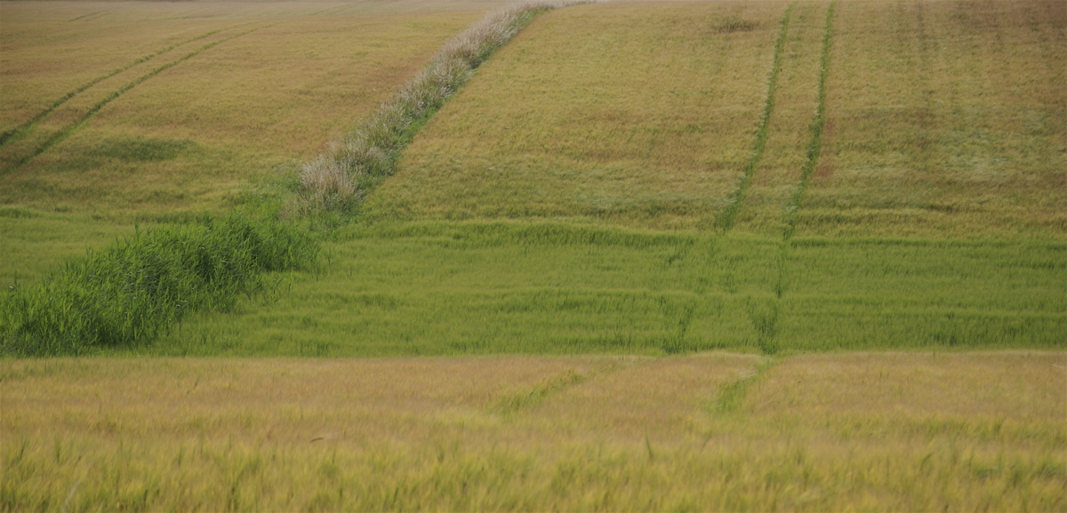 Denne lavning er uegnet til jordbrug, og der er ikke høstet et gram korn dér i mindst 12 år. Der burde ligge et stykke natur, men ringe lovgivning og pengemangel forhindrer det. (Foto: Michael Stoltze).