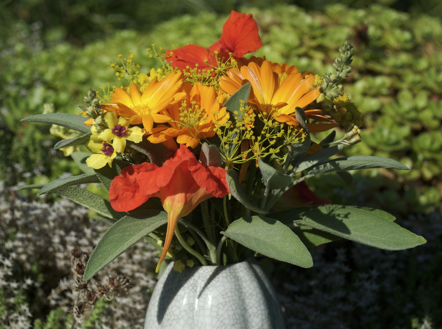 Lidt salvieskud i buketten forhindrer blomstervandet i at udvikle dårlig lugt. (Foto: Michael Stoltze).