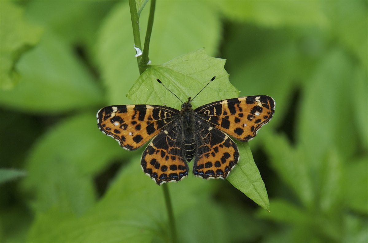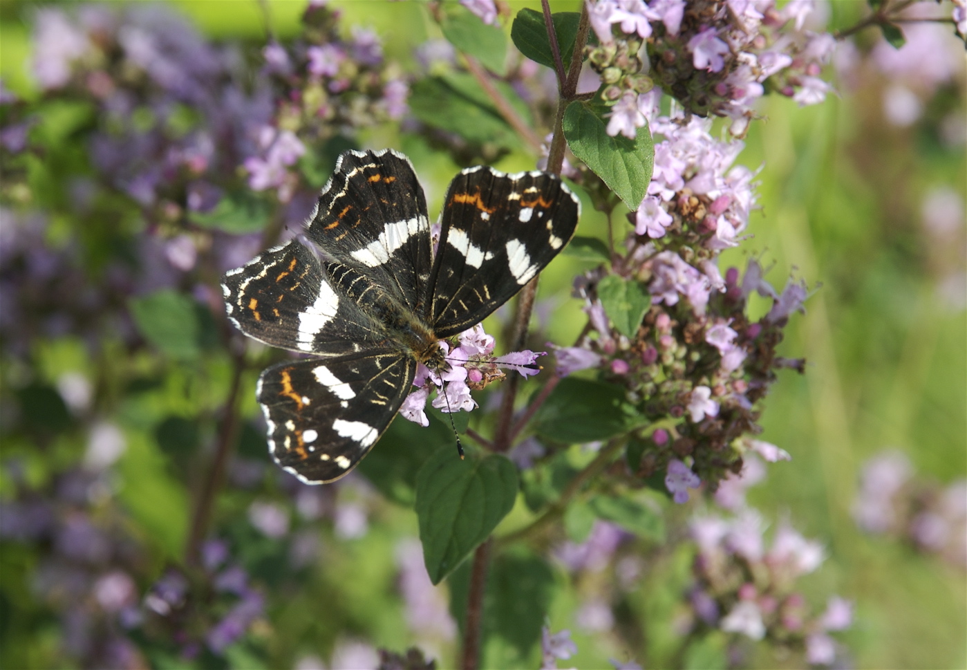 Nældesommerfugl på merian – den sort-hvide sommerform. (Foto: Michael Stoltze).