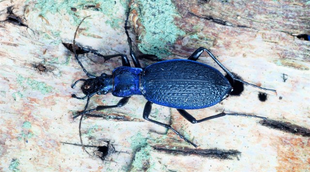 Der lever over 300 arter af løbebiller i Danmark. Bøgeløberen er en af de største, smukkeste og sjældneste. Den stinker frygteligt, hvis man pirker til den. (Foto: Michael Stoltze).