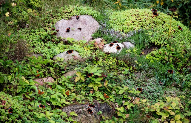 Admiraler (og hvide C’er) soler sig på stenhøj. (Foto: Michael Stoltze).