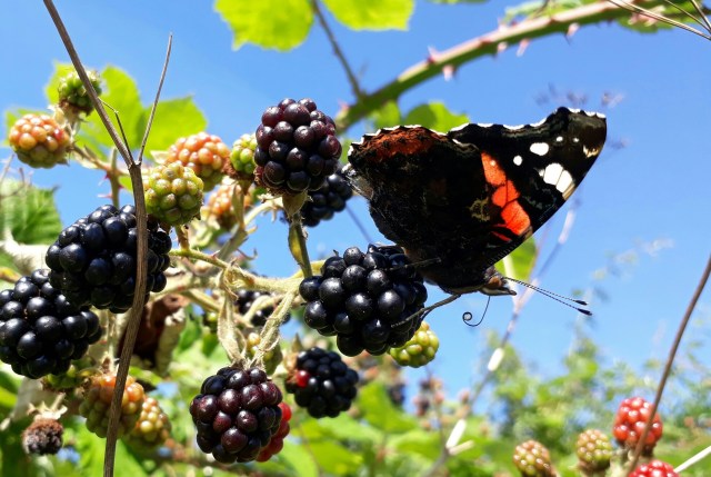 Admiraler tiltrækkes stærkt af gærende nedfaldsfrugt og for eksempel overmodne brombær. (Foto: Michael Stoltze).