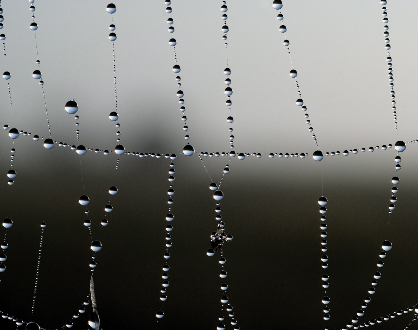 Dugdråber i spindelvæv virker som linser og vender verden på hovedet.