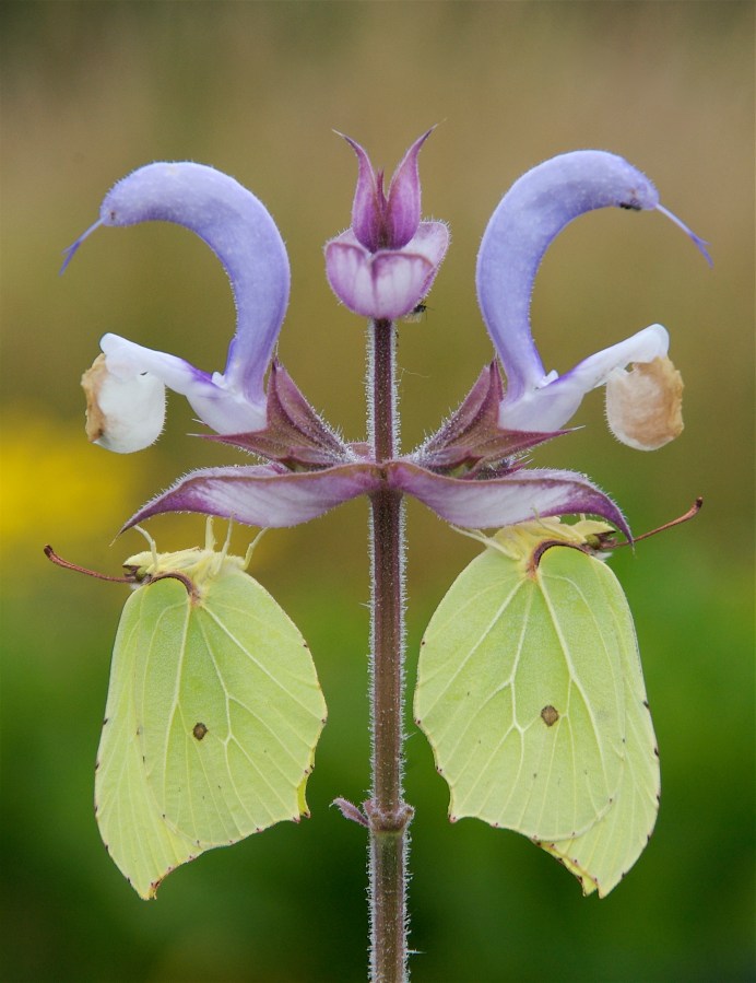 Liv og lykke. To nyforvandlede citronsommerfugle tørrer vinger i haven. De gør sig klar til at drikke nektar, overvintre og parre sig næste forår. (Foto: Michael Stoltze).