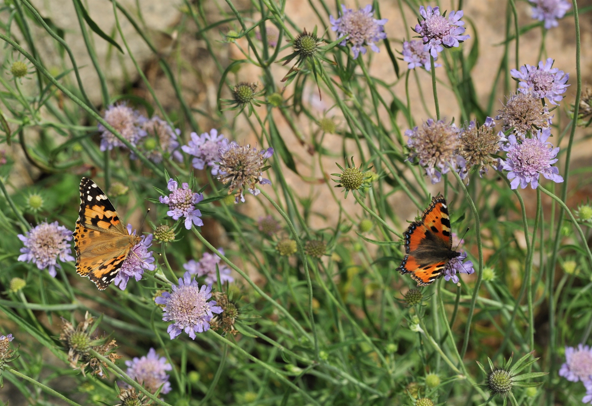 Tidselsommerfugl og naeldens takvinge i skabiose_Koldekilde_7-8-2019_lr